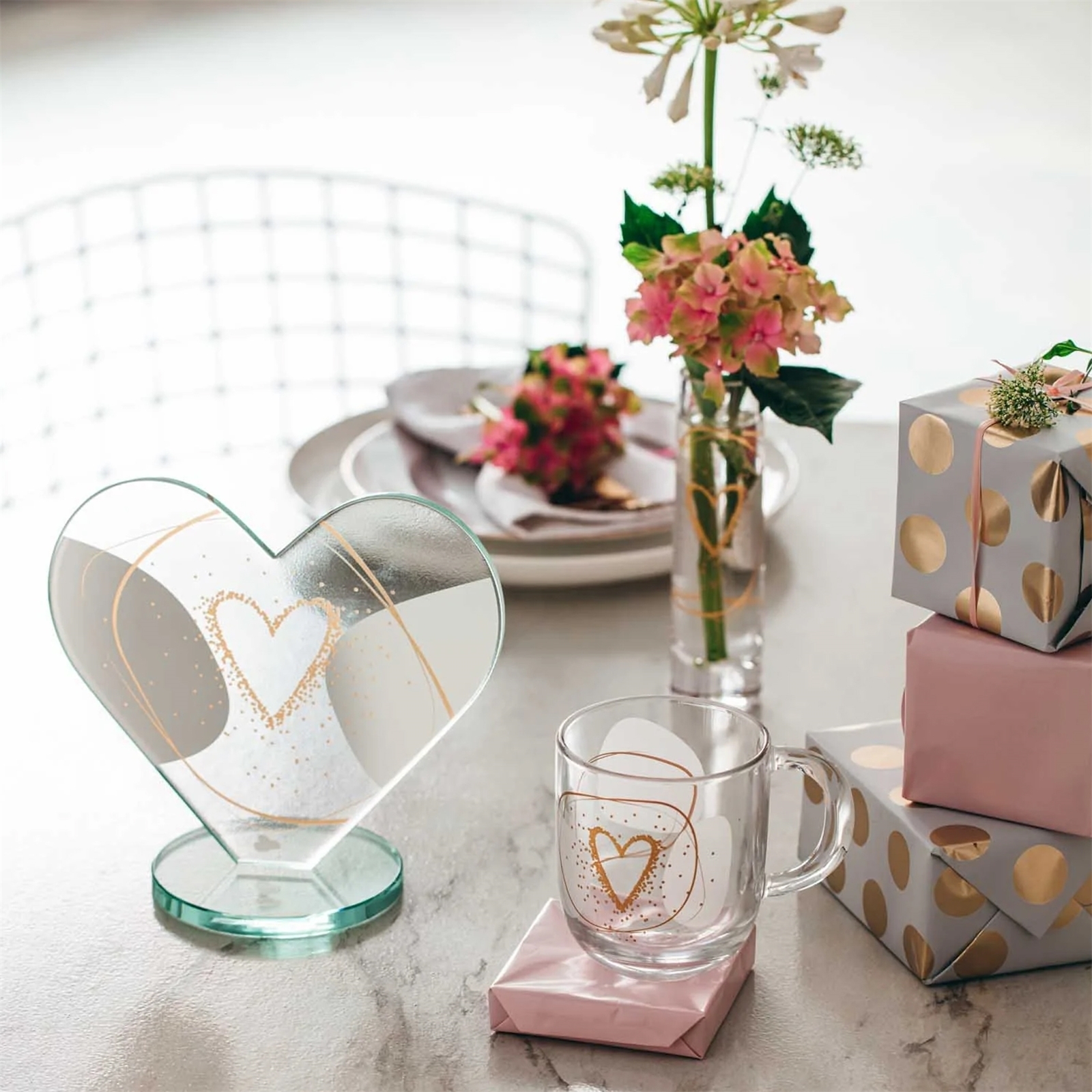 Verschenke ganz viel Liebe - mit unserem EMOZIONE Herzobjekt. Das goldene Herzdekor ist ein absoluter Blickfang und zieht die volle Aufmerksamkeit auf sich. Zum Geburtstag, Valentinstag oder als liebes Geschenk zwischendurch. Mach dir um das Verpacken keine Gedanken - unser Herzobjekt kommt schön verpackt bei dir an. So kannst du dir voller Vorfreude den Moment des Schenkens ausmalen. Maße 20,5 x 19 x 12 cm (BxHxT)