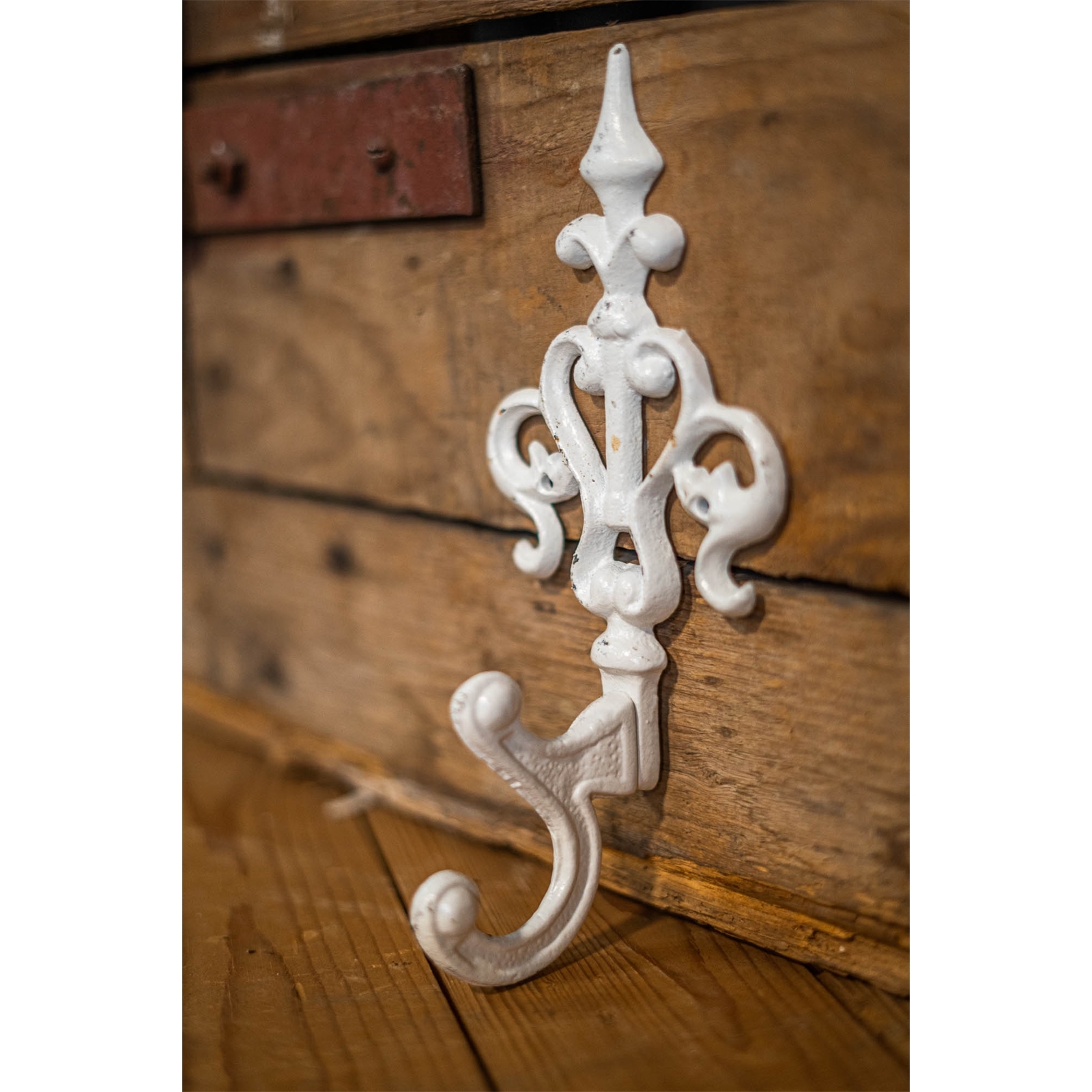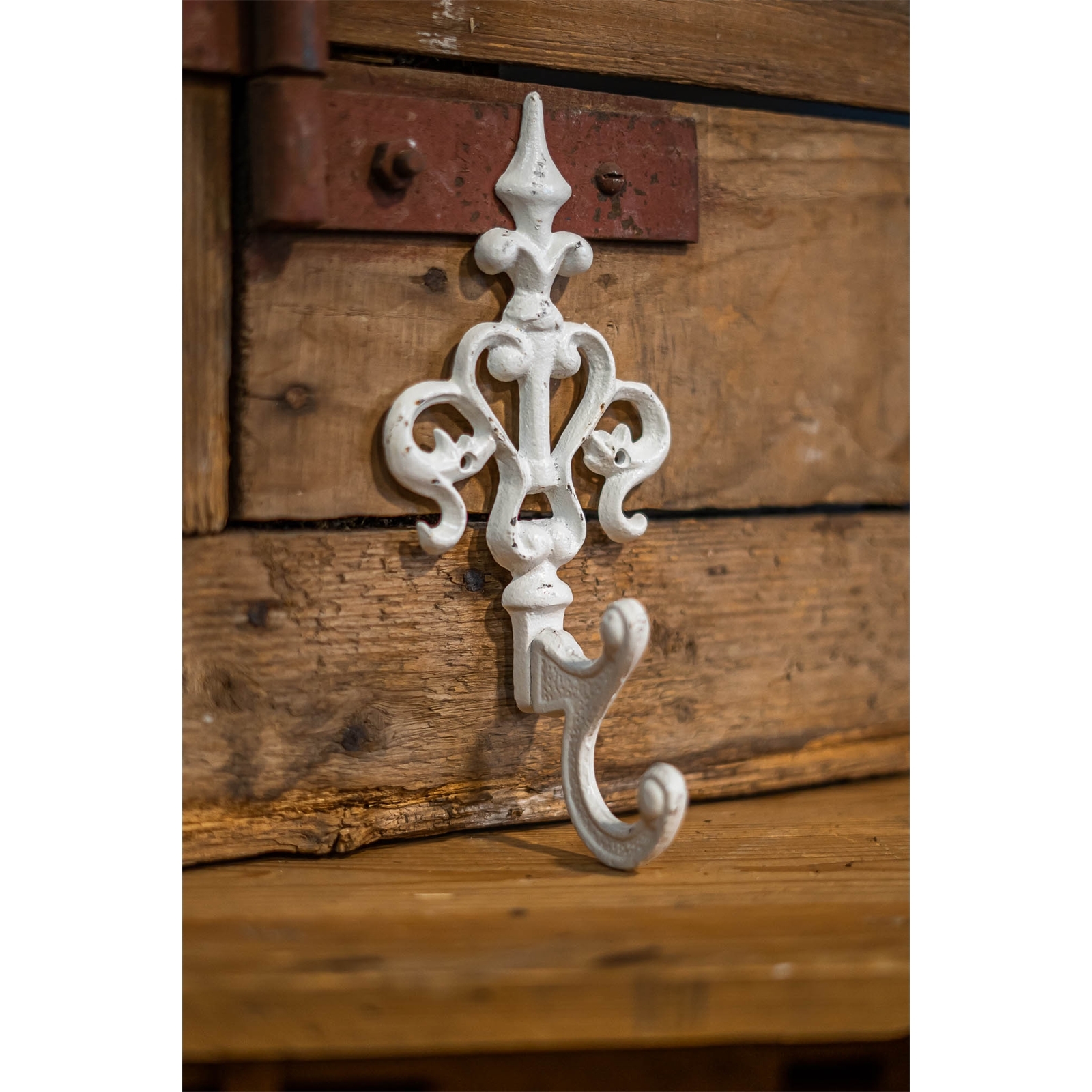 Unser formschöner Wandhaken besticht durch seinen rustikalen ländlichen Charme im Vintage-Look. Die Ornamente unterstreichen die besondere Optik. Der robuste Haken hält Ihre Garderobe im Flur oder Ihre Handtücher in der Küche oder im Bad. Der Haken hat zwei vorgebohrte Löcher für die einfache und schnelle Montage an der Wand. Achtung! Wandhaken nur im Innen- und überdachten Außenbereich nutzen und keinen äußeren Witterungsverhältnissen aussetzen, da dieser rosten kann.