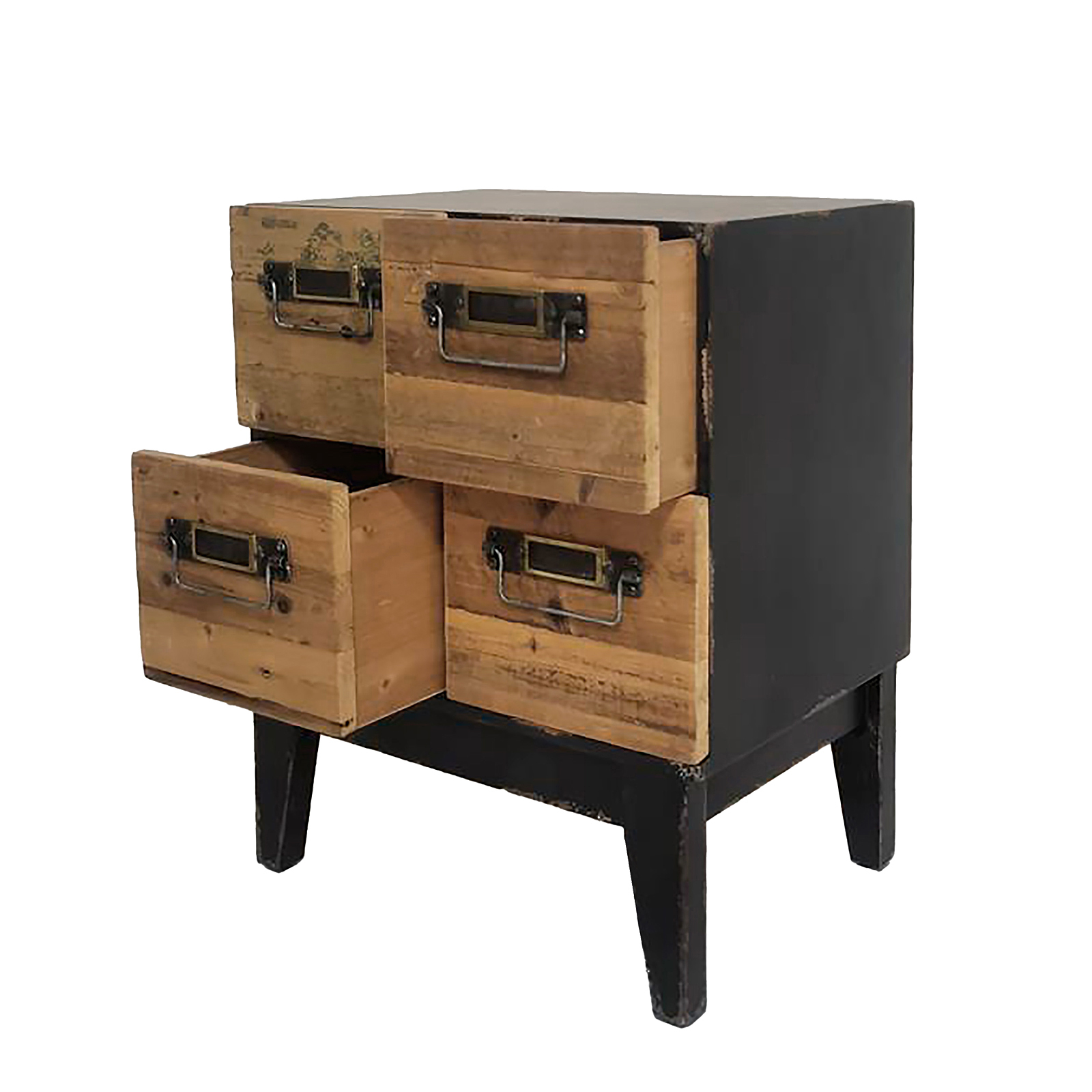 Die Kommode Imelda im Industrial Stil mit rustikalem Charme wird Sie begeistern. Sie sorgt in nahezu jedem Ihrer Räume für Ordnung. In 4 Schubladen können die verschiedensten Dinge gesammelt und aufbewahrt werden. Zusätzlich lassen sich die Schubladen über Etiketteneinschübe kennzeichnen oder personalisieren. Abnutzungs- und Gebrauchsspuren sind an diesem Artikel gewollt und unterstreichen die Vintage Optik. Maße B/H/T 44 x 55 x 33 cm, Innenmaße siehe Abbildung, Schubladen belastbar bis 5 kg, Ablagefläche 40 kg