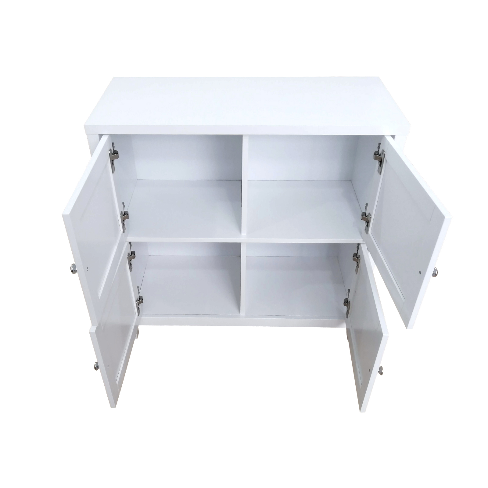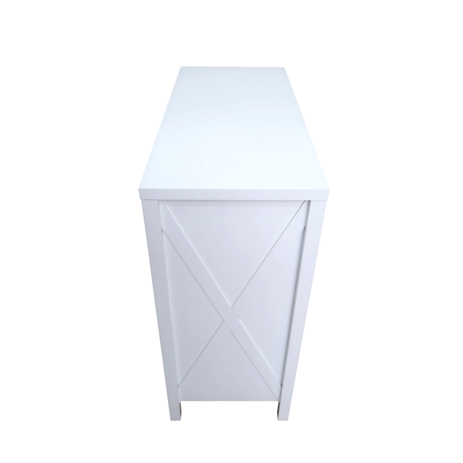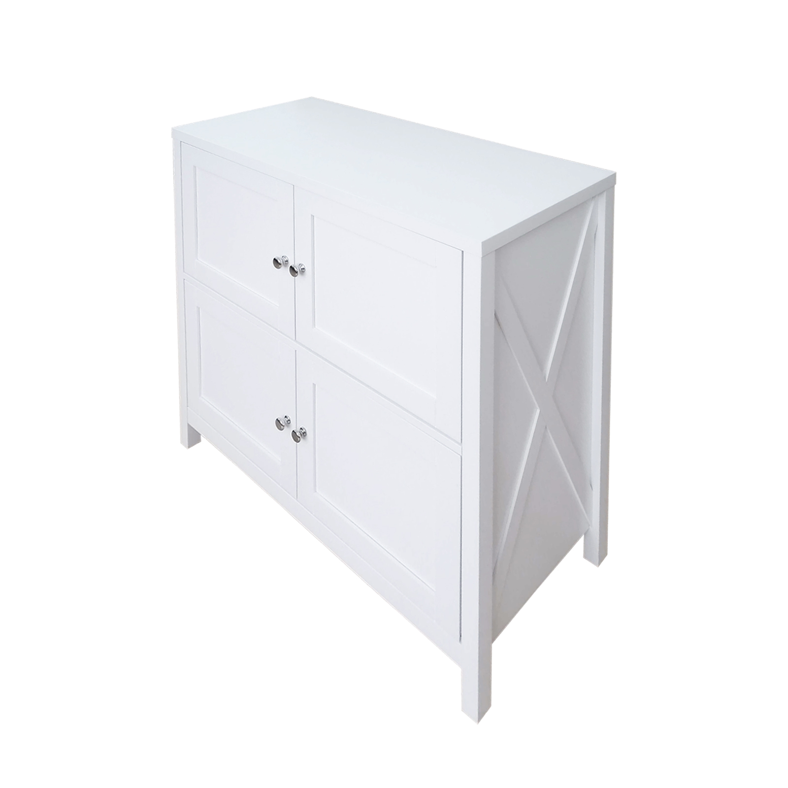 Klassisch und mit nordischem Charme fügt sich die Kommode Hayet harmonisch in Ihr Wohnambiente im Landhausstil ein. Als wahres Stauraumwunder findet sie auch in nahezu jedem Raum Verwendung. Hinter den 4 Türen kann nicht nur die DVD-Sammlung im Wohnzimmer, sondern auch das Geschirr im Esszimmer oder die Wäsche im Schlafzimmer aufbewahrt werden. Pflanzen, Bilderrahmen und diverse Wohnaccessoires werden auf der großzügigen Ablagefläche stilvoll in Szene gesetzt. Das dekorative Kreuz an den Seiten sorgt für weiteren Blickfang. Maße B/H/T 80 x 80 x 35 cm