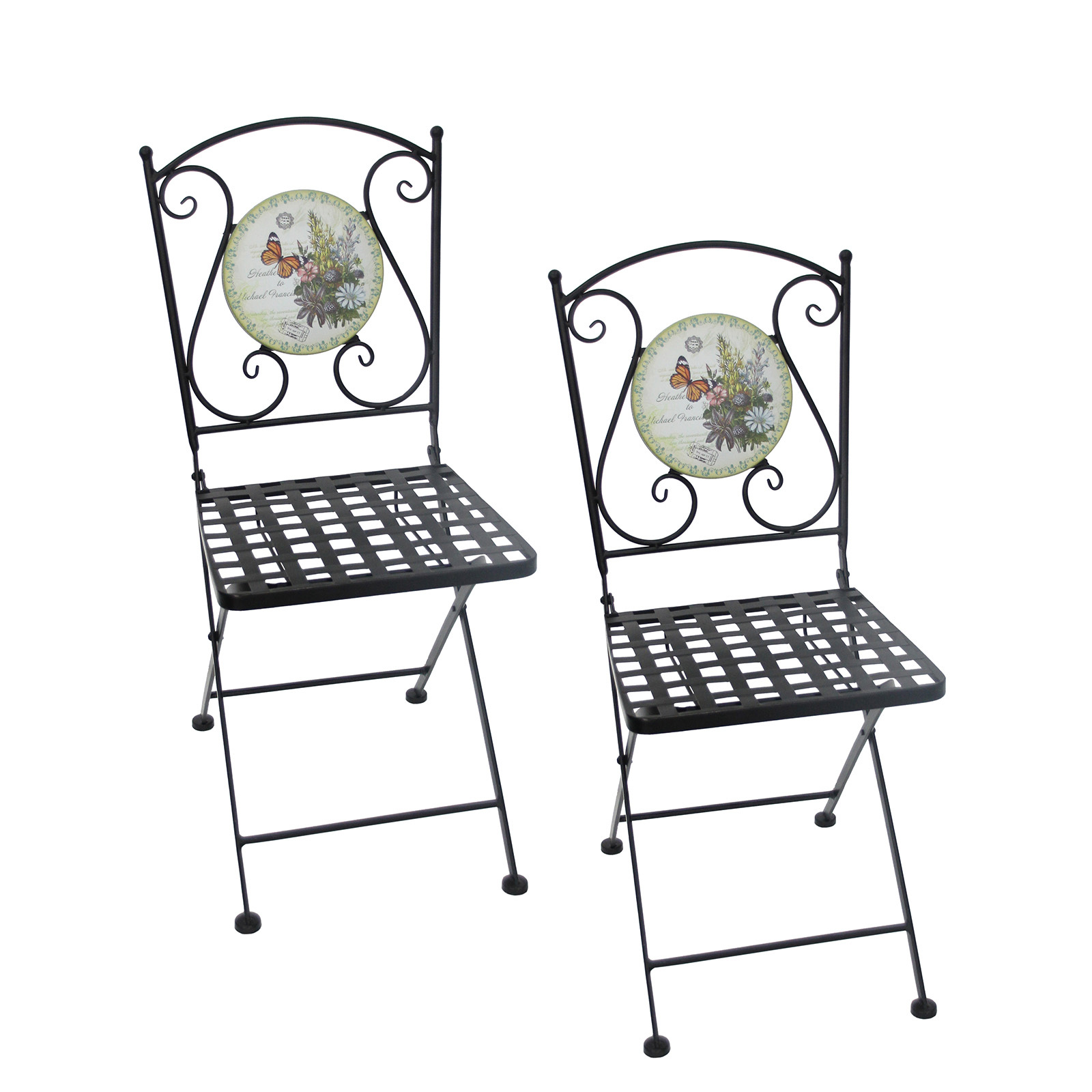 Vintage Style für Balkon, Terrasse und Garten (überdachter Außenbereich). Die Tischgruppe Celia aus Metall verzaubert mit einem tollen Fliesendruck sowie filigranen und verspielten Details. Das Set aus einem Tisch und 2 Stühlen schafft romantische Momente und ergänzt perfekt Ihre Wohndekoration.