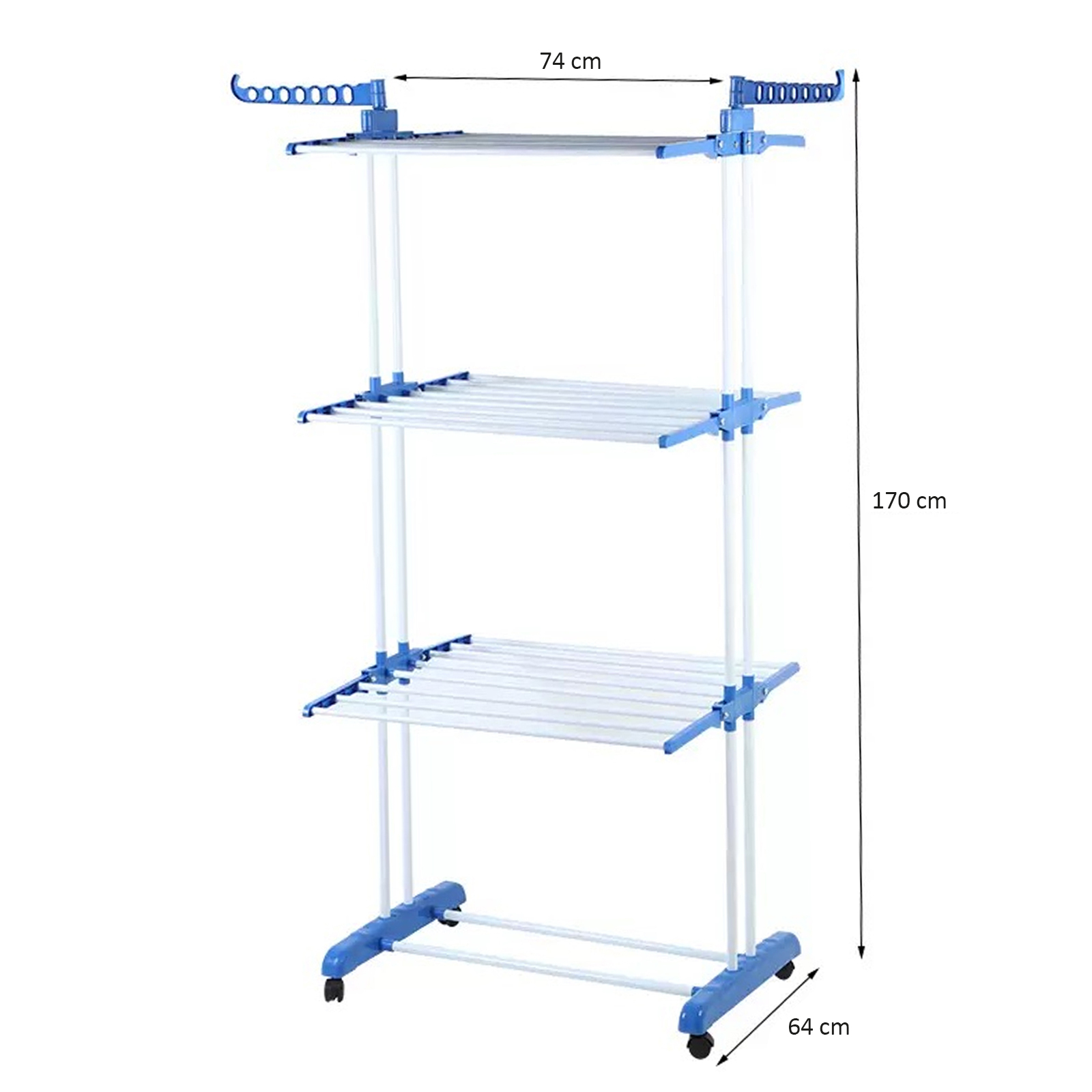 Der mehrstöckige Wäscheständer bietet großzügigen Trockenplatz auf mehreren Ebenen. Dank der klappbaren Trockenflügel und der integrierten Kleiderhaken ist er ideal für T-Shirts, Hemden, Bettwäsche und empfindliche Textilien. Die 4 Rollen sorgen für mühelosen Transport – perfekt für Innen- und Außenbereiche. Platzsparend zusammenklappbar und robust in der Verarbeitung – ein Must-have für jeden Haushalt.
