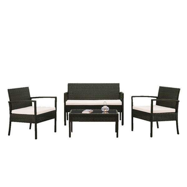 Genießen Sie entspannende Stunden im Freien mit diesem tollen Set. Es besteht aus einem 2-Sitzer, zwei Sessel und einem Tisch inkl. der dazugehörigen Sitzkissen. Die Lieferung erfolgt ohne Dekoration.