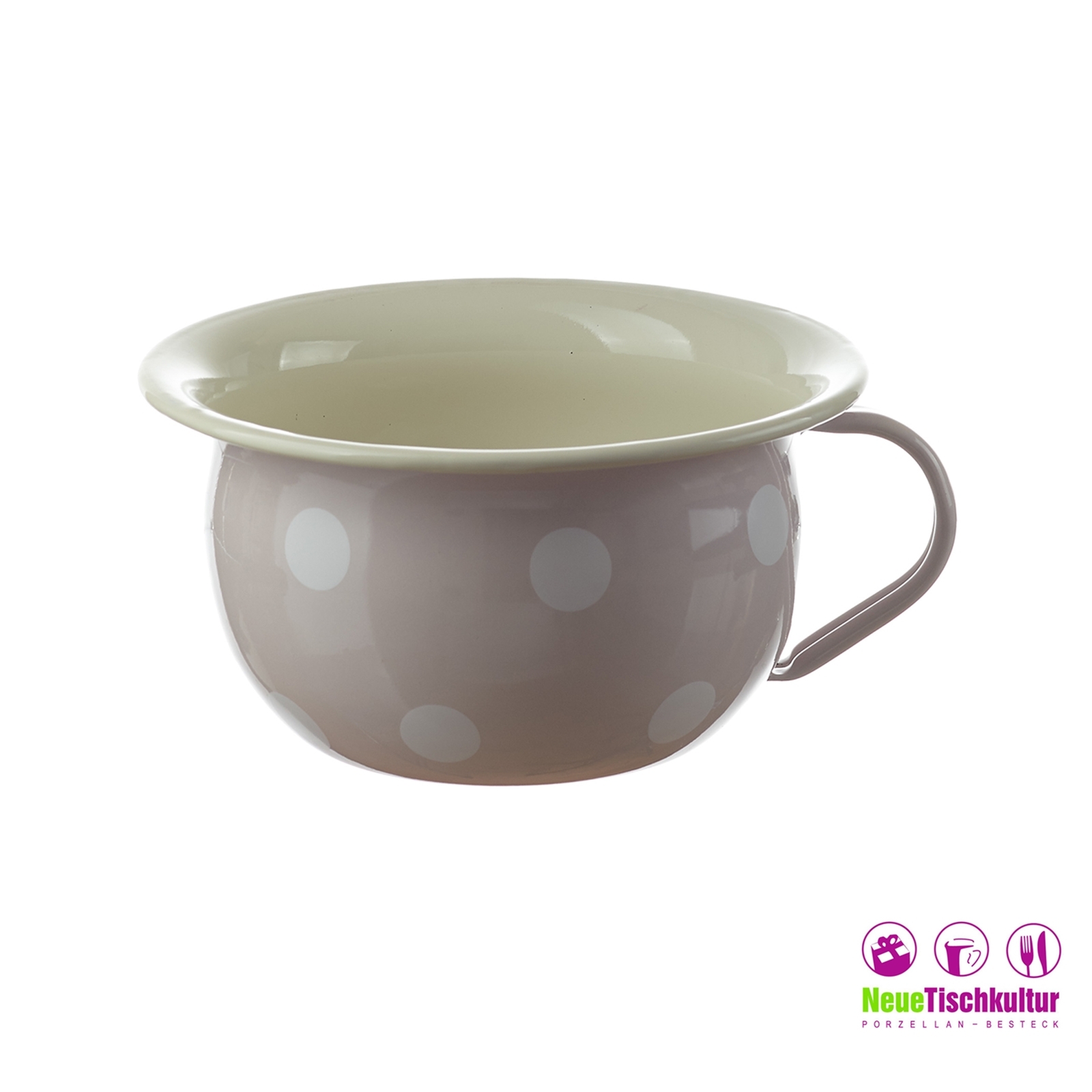 Da die glatte Oberfläche Bakterien- und Schmutz-abweisend ist eignet sich der Nacht Topf von Münder-Email ideal für Kinder. Der Topf kann außerdem auch als anderes Gefäß dienen wie zum Beispiel als Pflanzgefäß. Den Topf gibt es in verschiedenen Mustern und Farben. Maße: Ø 18 cm, Höhe 10 cm