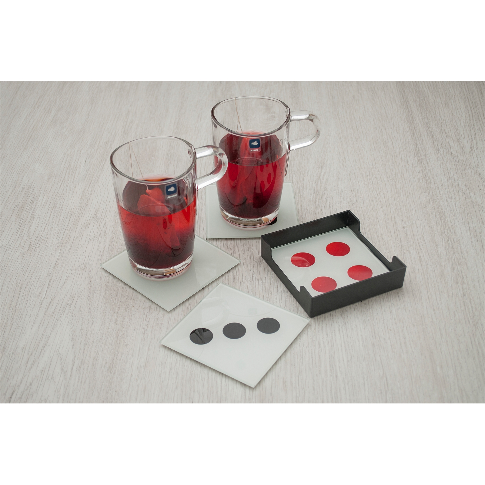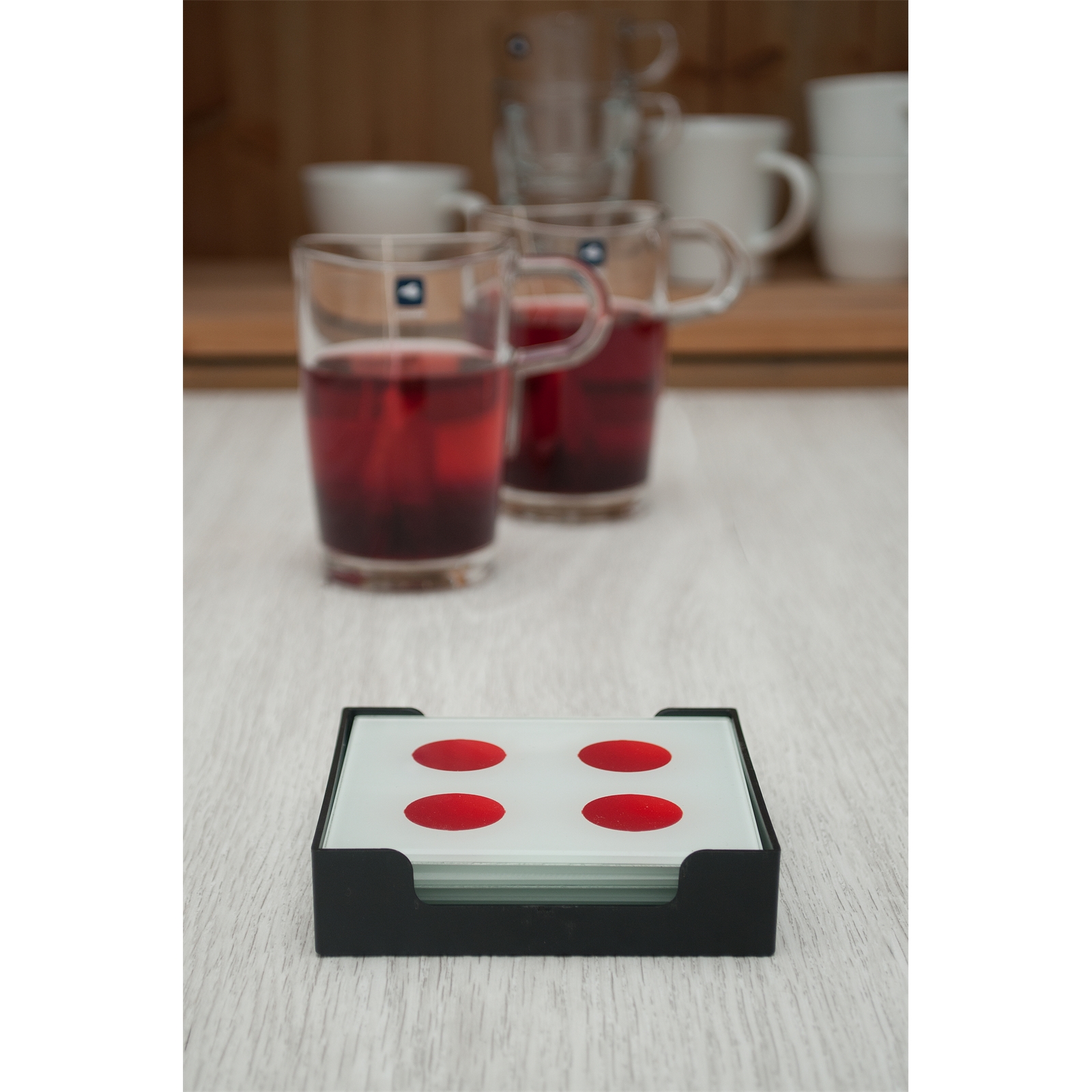Lieferumfang: 4 Untersetzer ohne Gläser und Dekoration