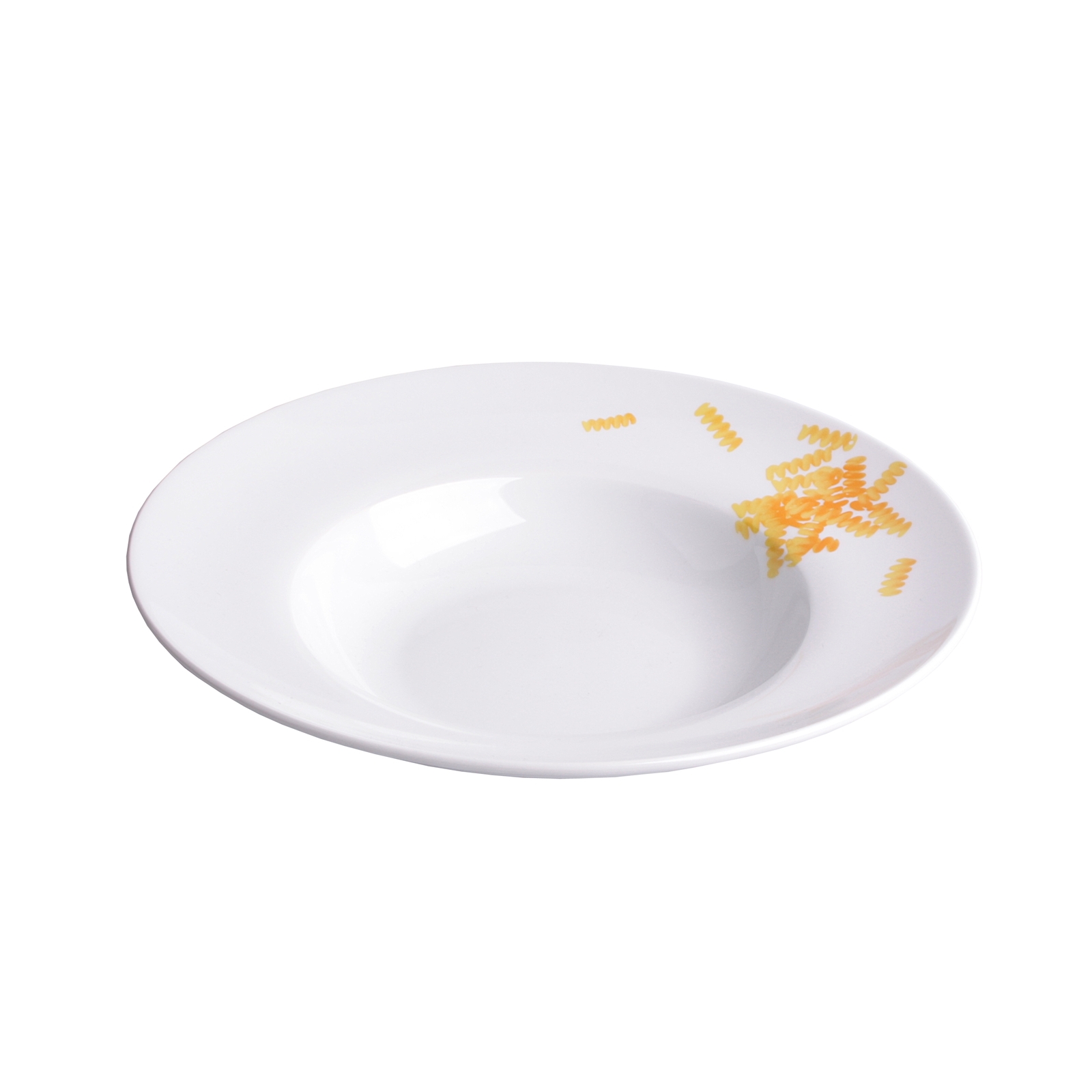 Dieser formschöne, moderne Teller ist ideal für das nächste Nudelgericht. Servieren Sie die Nudeln auf besondere Art. Den Teller gibt es mit verschiedenen Motiven. Motiv beim Kauf nicht frei wählbar – Lieferung erfolgt nach Lagerbestand und Zufallsprinzip. Maße: Ø 27 x H 6 cm, Material: Porzellan, Spülmaschinenfest