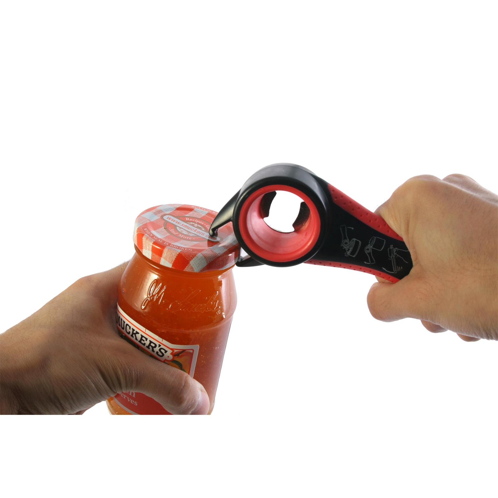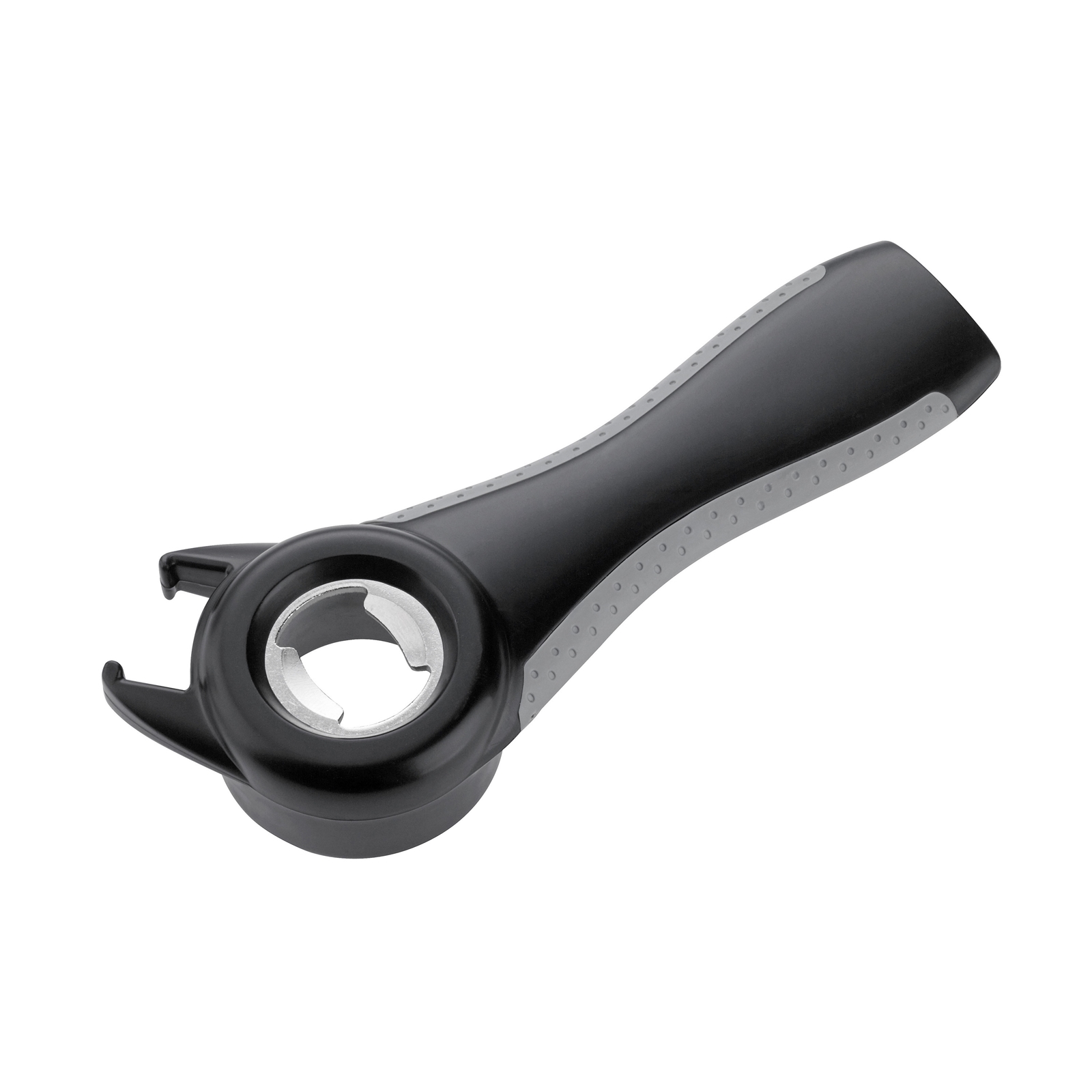 Ein wahres Multitalent, denn mit diesem Öffner lassen sich Drehverschlüsse (Ø 27mm - 31mm), Kronkorken, Glasdeckel, Getränke- und Pull-Ring Dosen öffnen. Maße: L/B/H 5,7 x 2,8 x 14,6 cm