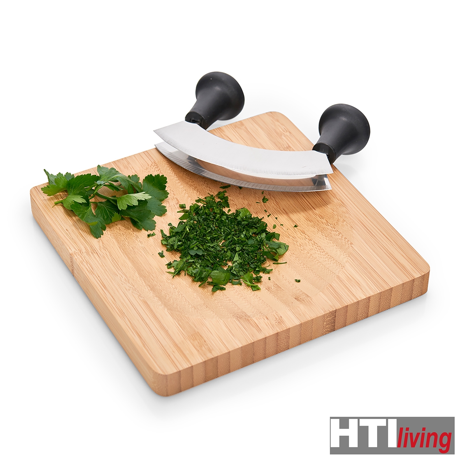 Diese praktische Set in Form eines Wiegemessers mit Muldenbrett trägt zum Gelingen vieler Gerichte bei. Das Kräuterbrett aus edlem Bambusholz ist besonders schnittfest und messerschonend. Das Wiegemesser aus hochwertigem Edelstahl ist mit einer Doppelklinge ausgestattet und dank der beiden Griffe ist das Zerkleinern schnell und einfach. Maße Schneidebrett 20 x 20 x 2 cm
