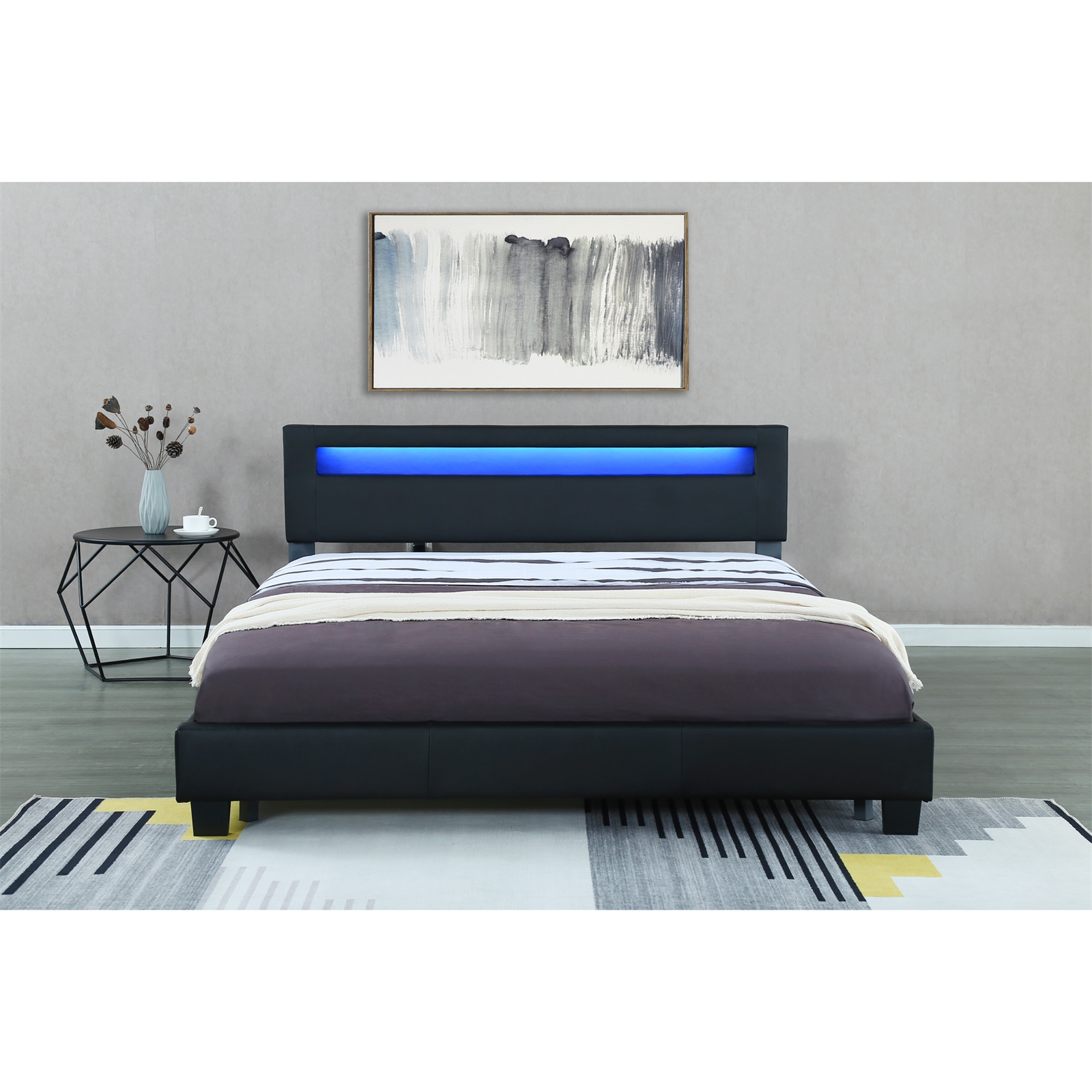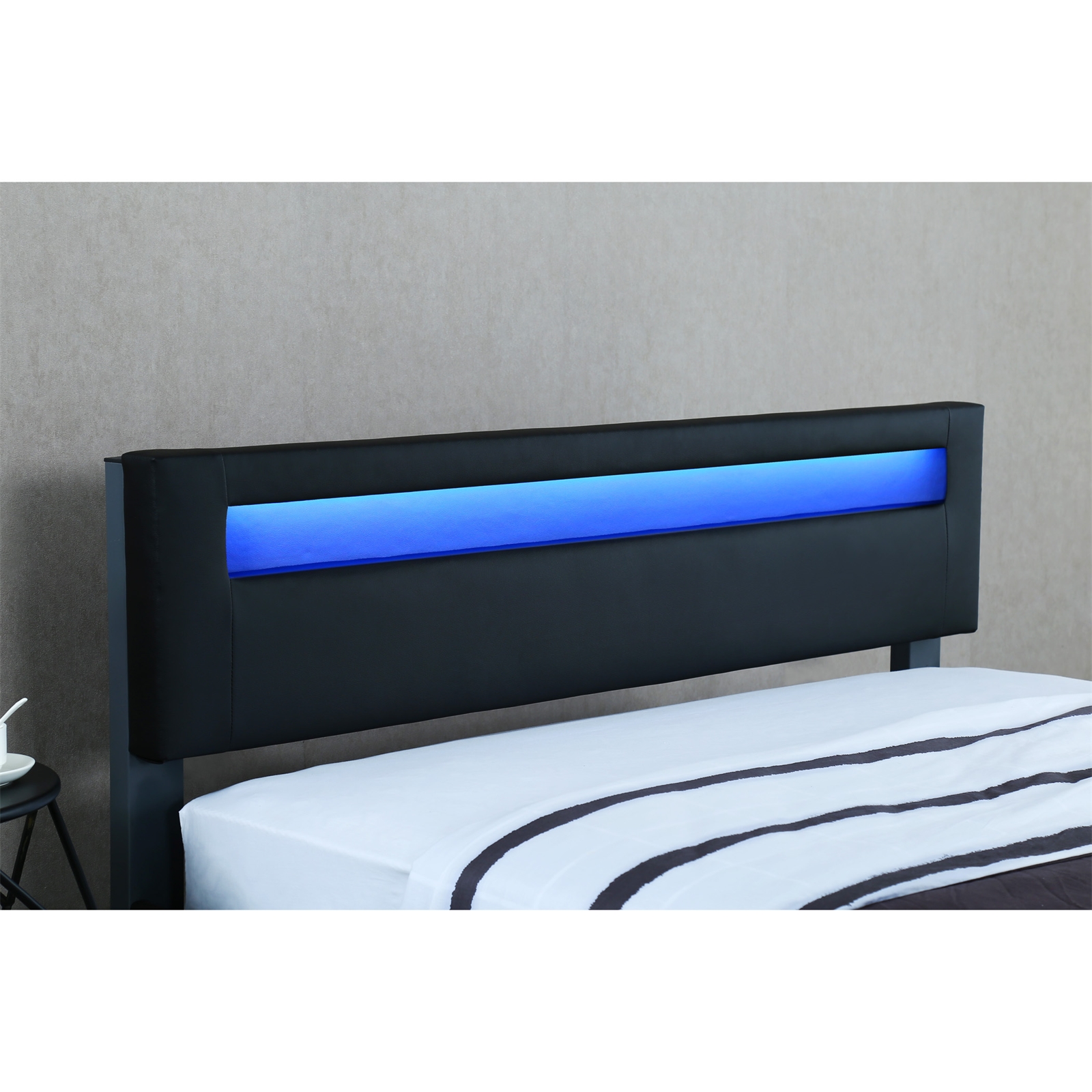 Das formvollendete Design des Betts Luis in klassischem Schwarz integriert sich perfekt in jeden Wohnstil und bringt frischen Wind in Ihre vier Wände. Die Liegefläche bietet genügend Platz zum Schlafen und Entspannen. Es besticht durch Stabilität und wird in jedem Schlaf- oder Gästezimmer zum Hingucker. Die eingebaute LED-Beleuchtung am Kopfteil spendet Ihnen angenehmes Licht und sorgt für viel Gemütlichkeit. Das Licht mit wechselnden Farben und Effekte steuern Sie bequem mit einer Fernbedienung.