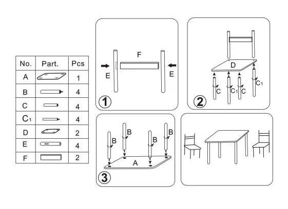 Lieferumfang: 1 Tisch, 2 Stühle