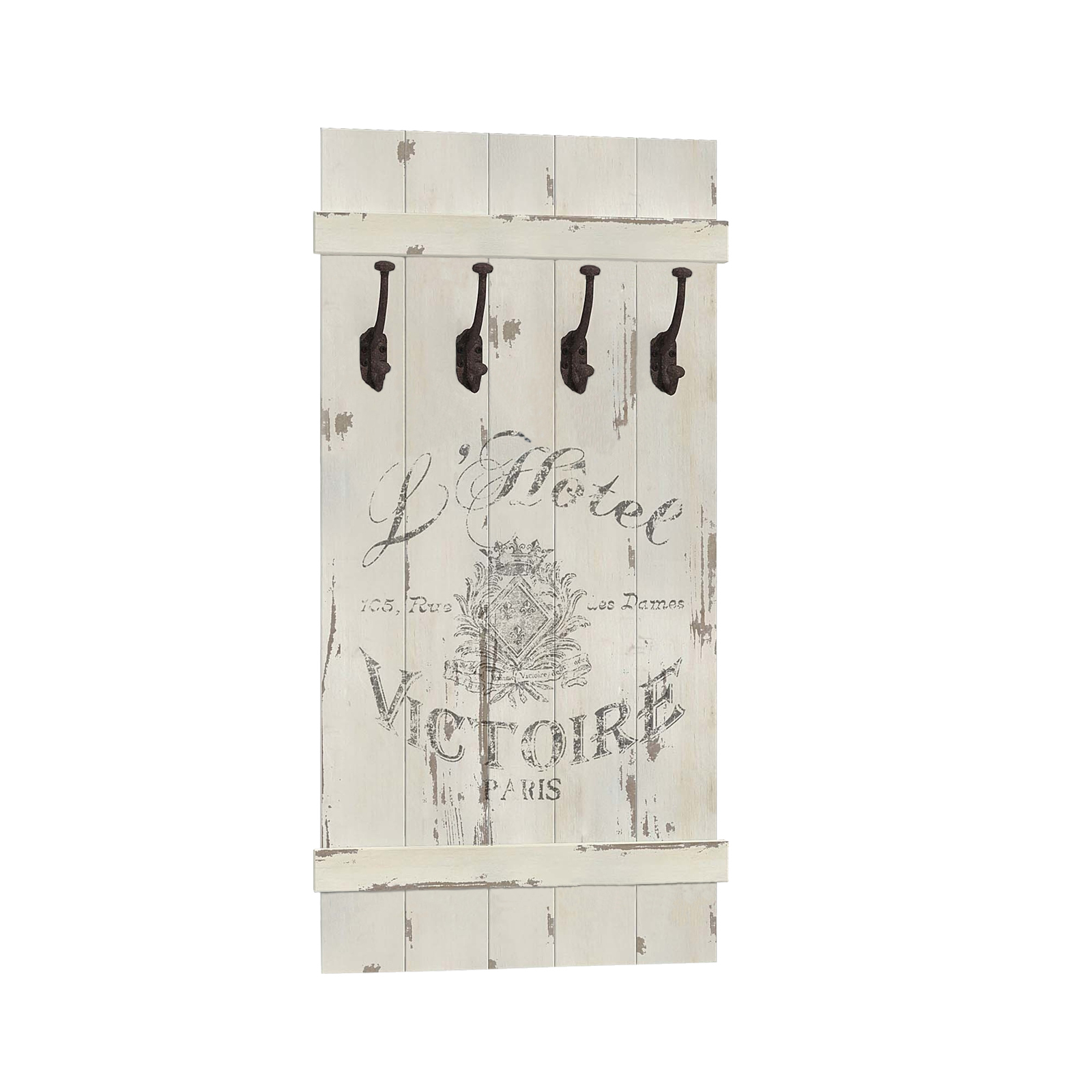 Dekorative Garderobe im Shabby Look. Dank der vier Haken ist Platz genug, um Jacken, Mäntel oder Taschen aufzuhängen. Maße 50 x 100 x 10 cm (BxHxT) Mit 2 Aufhängern, ohne Montagematerial zur Wandbefestigung.