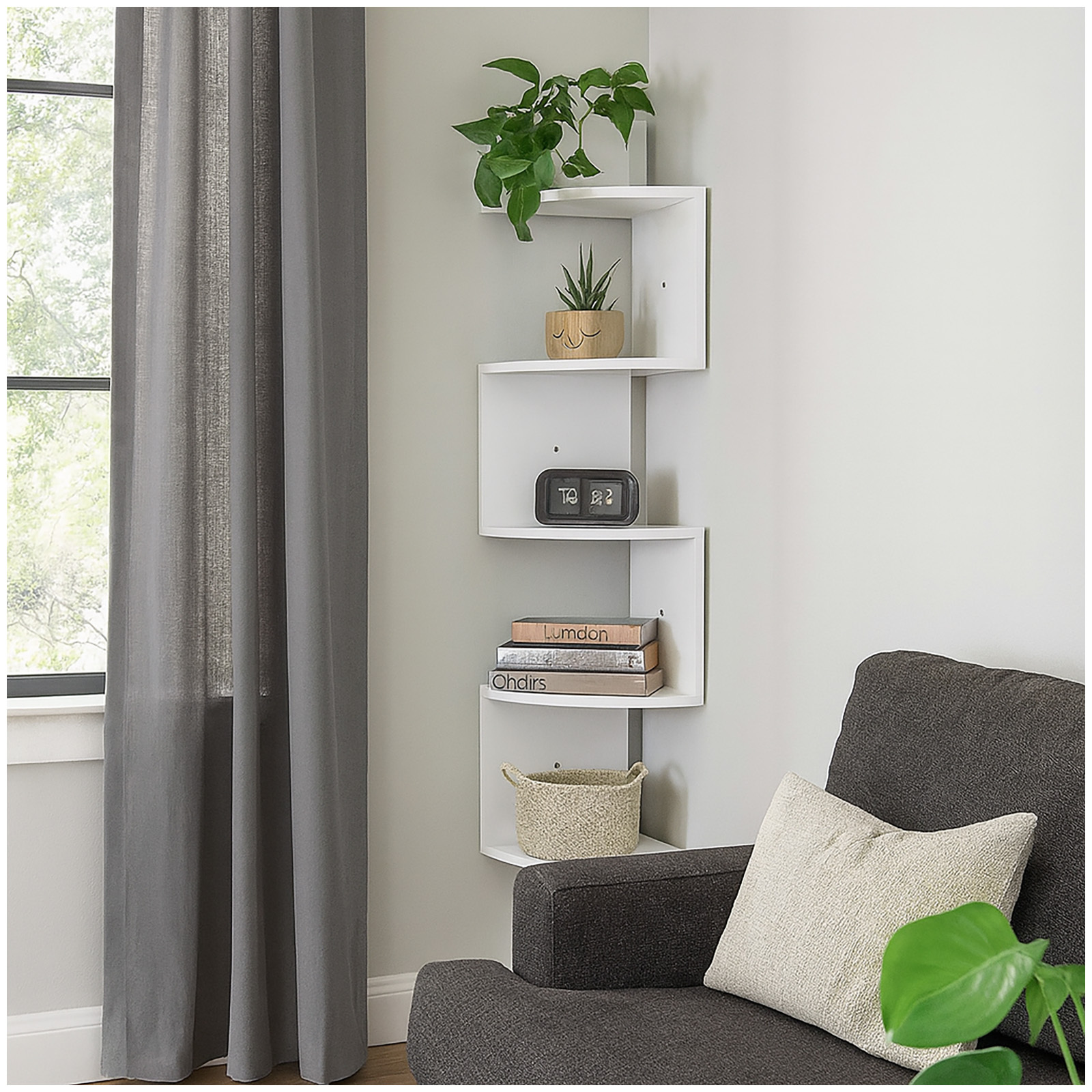 Unser Eckregal Thekla ist dekorativ und funktional zugleich. Es passt nahezu in jeden Wohnraum und kann vielseitig genutzt werden. Es bietet nicht nur Platz für Bücher, DVD‘s oder Pflanzen, auch Wohnaccessoires wie Figuren werden stilvoll in Szene gesetzt. Maße: L/B/H 27 x 27 x 125 cm