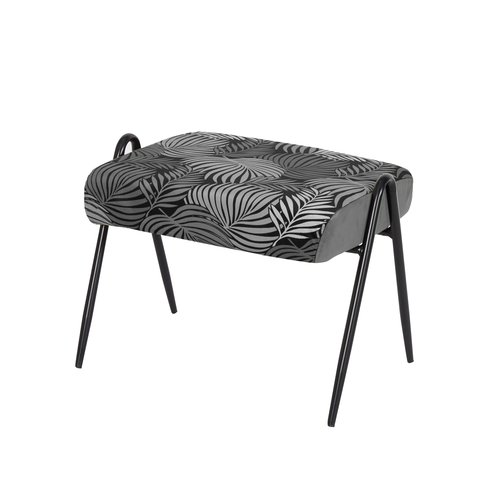 Der Hocker Olean verleiht Ihren vier Wänden modernen Retro-Charme und setzt mit der gemusterten Sitzfläche besondere Akzente. Weich gepolstert mit samtiger Oberfläche lässt es sich bequem darauf Platz nehmen. Kontrast dazu bildet das Gestell aus Metall mit schräg gestellten Beinen. Maße 55 x 42 x 39 cm